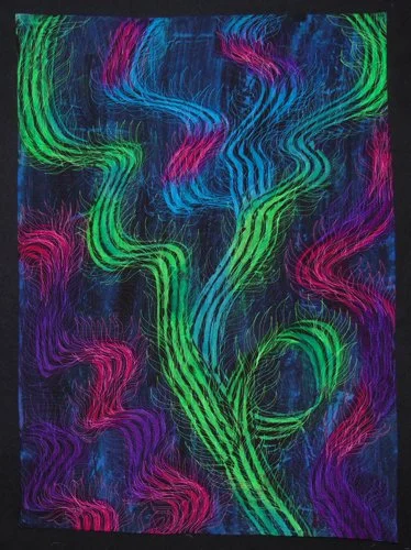 Digital design, digital painting, digital printing, machine quilting. Cotton fabric, polyester & acrylic thread, cotton/bamboo batting